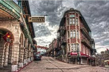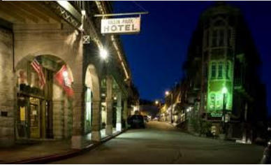 History of 1905 Basin Park Hotel This hotel is in the Victorian historic district in downtown Eureka, listed on the National Register of Historic Places. The hotel is next to cold water Basin Springs, which was the heart of the health resort community 100 years ago. Basin Park Hotel is built into the side of a mountain. All eight levels of the hotel are at "Ground Level." This unique feature earned a place on "Ripley's Believe It of Not" list. The mountainside building is constructed of white limestone and pink dolomite rock walls. During the Prohibition era, Joe Parkhill owned Basin Park Hotel. Parkhill was a wheeler dealer who promoted tourism to Eureka Springs by encouraging the law to turn a blind eye to illegal activities The sixth floor Rooftop Billiards Room was equipped with slot machines. A long bar served drinks of liquor. Alcohol and slot machines were illegal during this era. The signs of illegal activity could be quickly hidden behind doors, marked storage, in the event of a surprise police raid.. Word of this unique illegal venue in the scenic, hidden mountain town spread to Chicago . Chicago was home to many well known gangsters. The Chicago gangsters were attracted to the remote mountain town with illegal activity. Gangsters made the hotel one of their hangouts. It is rumored that Al Capones sister stayed at Basin Park hotel for over a month. The Basin Park Hotel attracted shady characters and gangsters in the 1940's and 1950's. Gangsters and their cohorts enjoyed parties and gambling in Eureka Springs. The construction of the hotel, with every floor having a ground entrance provided a quick escape route from every room. This unique characteristic was perfect for a quick escape from a fire. Gangsters found it a quick escape from the law when necessary. The notorious lawbreakers from Chicago thought the Basin Park Hotel, with its easy access to illegal activities, was a great "vacation getaway." Joe Parkhill registered many guests at no charge. The arrangement apparently worked for the involved parties.    Basin Park has held an annual event, called the Barefoot Ball, since the 1940's. Guests dance in the "The Roof Garden" ballroom in bare feet. In 1955 at new sheriff decided to put an end to the criminal element in Eureka Springs. Police raided the Barefoot Ball after the liquor and slot machines had been broken out. Joe Parkhill, John Doe and Jack Rabbit were arrested and taken to jail. The slot machines were smashed. Without booze the Chicago "friends" stopped coming to Eureka Parkhill found the hotel hard to operate without booze and gambling, so he sold the Basin Park Hotel to a retired United States Congressman, and Eureka Springs native, Claude A Fuller. Congressman Fuller had owned the Basin Park Hotel and the 1886 Crescent Hotel in the 1920's. He sold the hotels in 1931, a couple of years after he was elected to Congress. Once again, the hotels belonged to Fuller. Ghost Stories of 1905 Basin Park Hotel Eerie sights at the haunted hotel, a phantom dog, ballroom ghosts, a lion ghost, a translucent woman and brown suited man and a risque room. One man was in asleep in bed with his wife. He awoke to see a pale, young girl walking through the wall. The young girl lifted the covers of the bed The man's voice was frozen in fear, so he could barely eek out, "No." The man's sleeping wife never awoke from this nocturnal ordeal. 1905 Basin Park Hotel Today The current owners, Marty and Elise Roenigk, purchased the hotel in 1997 and pledged to restore the hotel. The pledge became reality with a multi-million dollar restoration. Today the Basin Park Hotel features Serenity Day Spa, swimming pool, Lucky 7 Rooftop Billiards Parlor and front door access to over 100 unique downtown shops