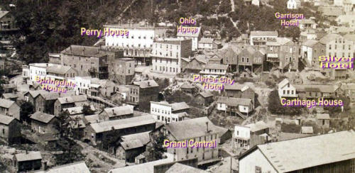 1882 photo showing various Eureka Hotels of an earlier era, the